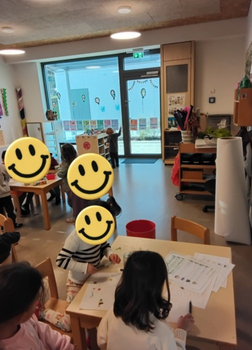 Im Atelier können die Kinder ihrer Fantasie freien Lauf lassen. Die Freude am eigenen Tun steht im Vordergrund. Das Schaffen im Atelier rückt nicht nur die Feinmotorik in den Vordergrund. Auch die Selbstständigkeit, das Abwägen von Entscheidungen, das Kennenlernen verschiedener Eigenschaften, das logische Denken bei Konstruktionen, das Experimentieren mit verschiedenen Techniken und vieles mehr werden in den Fokus gerückt. Eine wichtige Rolle spielt auch die Kommunikation, wenn beispielsweise durch verschiedene Schachteln ein Fahrzeug entsteht und viele Kinder in diesen Prozess miteingebunden sind.